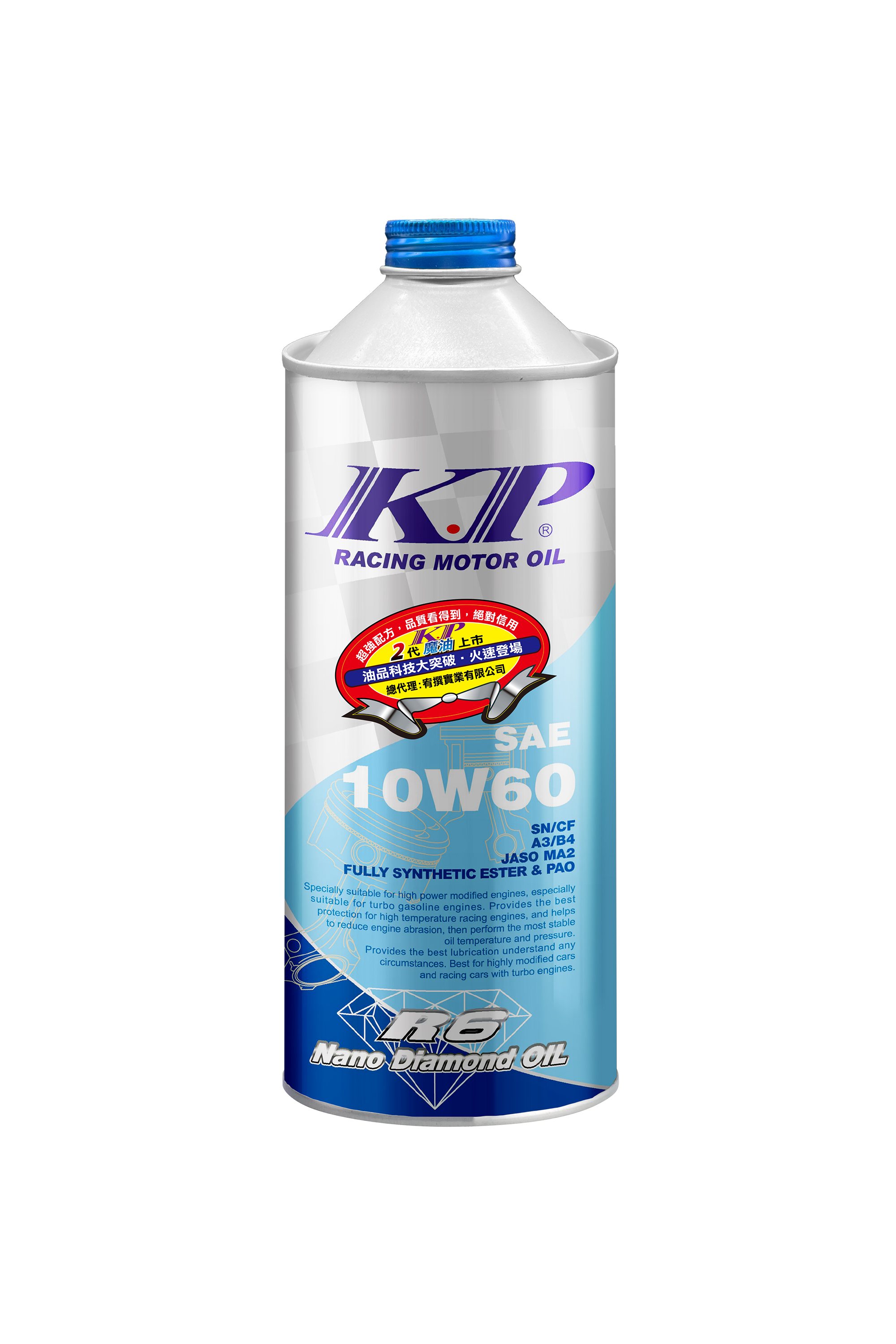 • 推薦使用於高輸出馬力之改裝車引擎,特別是渦輪增壓汽油引擎,超越傳統機油,提供高溫賽車引擎最貼切的保護,能降低引擎的磨耗,並能表現出最穩定的油溫、油壓性能,本油品在任何狀況下,均能提供最優越的潤滑性能。